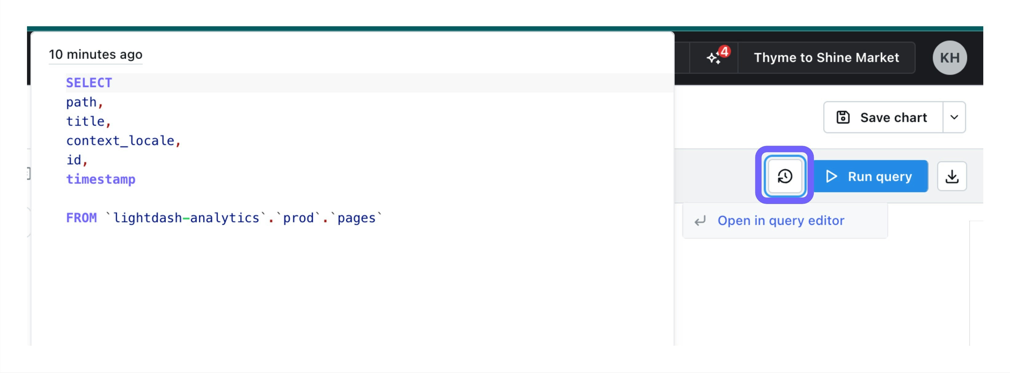 - Click the link icon in the top-right to share your query draft with a coworker (or save it yourself to return to later).