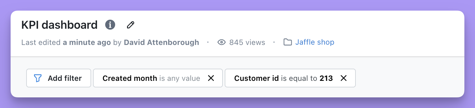 You can add filters to your charts individually in the Explore view, or across all of your charts in your dashboard. Don’t worry, we’ll walk you through both and you’ll be a filter pro in no time!